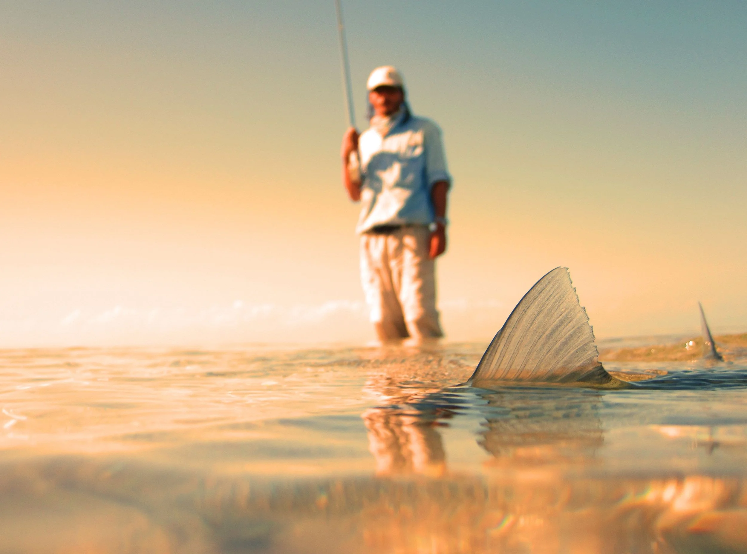 Often the Anglers perception of successful bonefishing is orientated almost exclusively around the cast and if the fly lands in the zone then it should be considered a caught fish. This is not the case as the 'zone' changes depending on things like water depth, the fishes speed, wave action or lack of it and fly sink rate. A fish caught 2 minutes on an exposed deeper flat edge needs a completely different approach than say, one which although on the same flat, is now on the inside in flat calm and shallow water. Fly presentation is a far more hurried affair from the front of a moving bonefishing skiff than most anglers are used to in their normal fly fishing environment and assuming that the fly has been presented in the correct position then the subtleties of fly animation and bight detection is what often turns an ordinary day into an exceptional one. Each bonefishes reaction to the fly is different and anglers can only begin to notice and understand these subtle changes after they have passed the often 'panic presentations' of their first few days or even their entire inaugural outing. An anglers success at throwing a fly at a school of 200 1 to 2 pound fish in 3 feet of water cannot hold it’s place on the ladder of success compared to a successful presentation at a pair of 'snarfling', tailing 10 pound fish in 10 inches of water. However it may only take one of the latter fish to make any anglers trip.